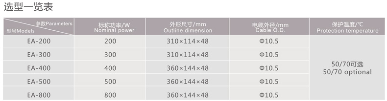 ◆ 保護溫度:50℃、70℃